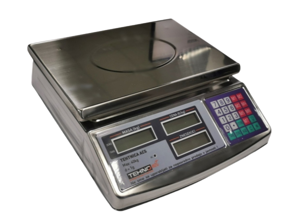 Trgovska digitalna tehtnica za domačo uporabo. Tehtnica je zelo primerna za interno uporabo na domu, kakor tudi za kontrolna tehtanja v trgovini, gostinskih obratih ipd. Napajanje je z vgrajenim akumulatorjem ali 220V. Trgovinske tehtnice zaznamujejo številne funkcije kot so : TARA,osvetlitev prikazovalnika,izračun zneska,spomin za cene...